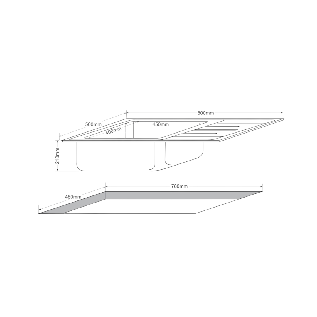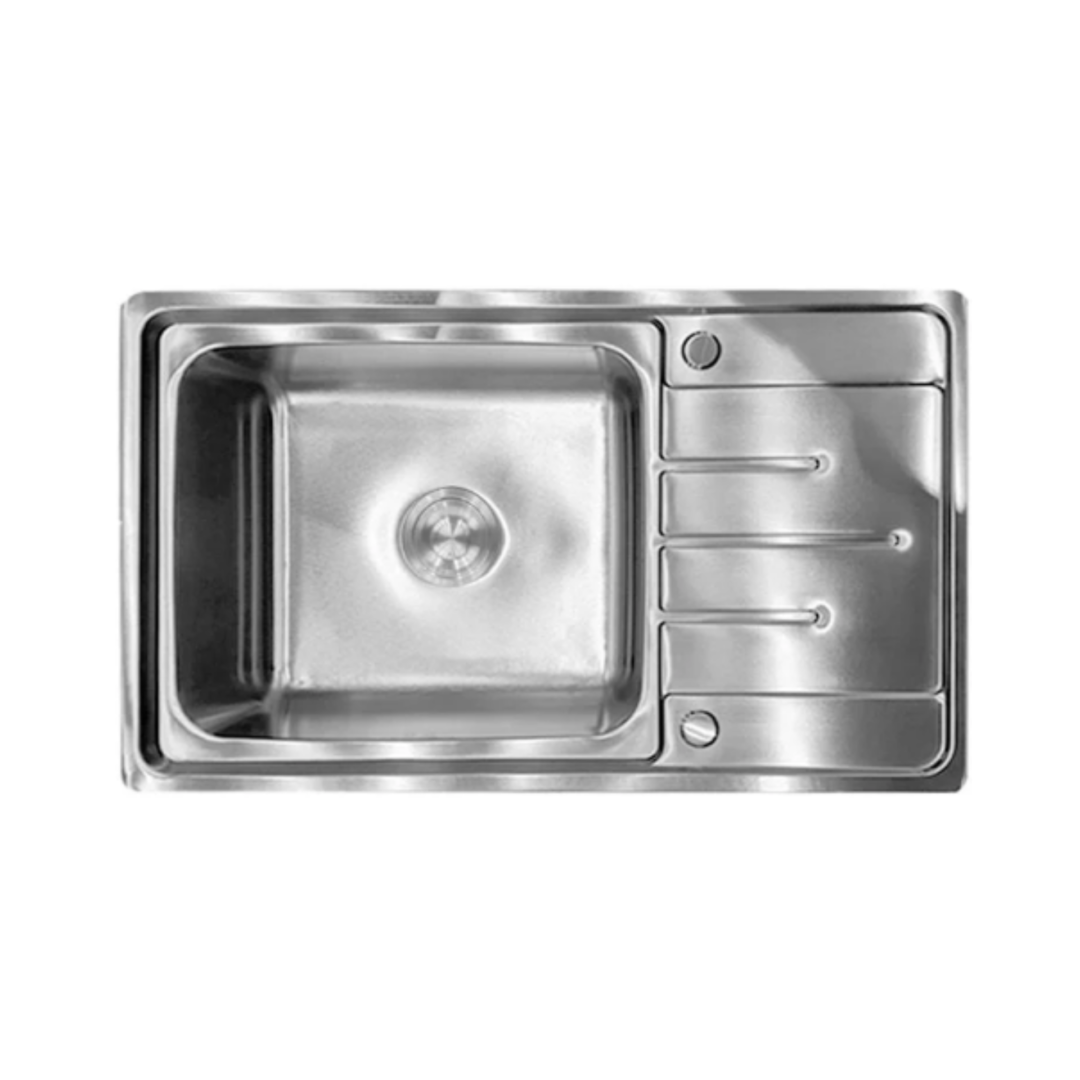 อ่างล้างจาน 1 หลุม 1 ที่พัก แบบฝัง Tecnoplus รุ่น TNP CROWN 80 S ขนาด 80 ซม. ลึก 21 ซม.