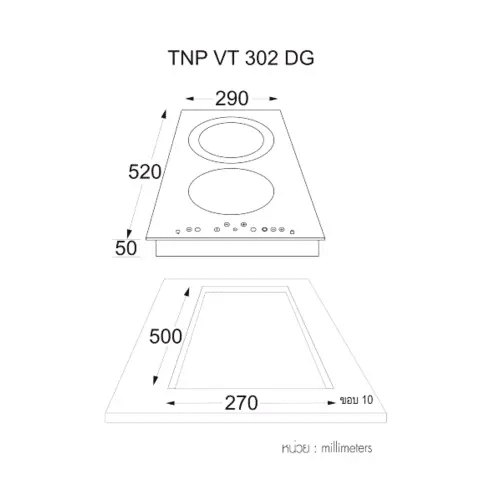 - ขนาดเตา : 28.8 x 52 x 5.5 ซม.